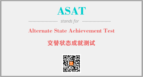 英文缩略词“ASAT”经常作为“Alternate State Achievement Test”的英文缩写来使用,中文表示:“交替状态成就测试”。本文将详细介绍英文缩写词ASAT所代表英文单词,其对应的中文拼音、详细解释以及在英语中的流行度。此外,还有关于缩略词ASAT的分类、应用领域及相关应用示例等。