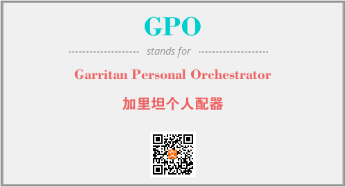 以上为Garritan Personal Orchestrator英文缩略词GPO的中文解释,以及该英文缩写在英语的流行度、分类和应用领域方面的信息。