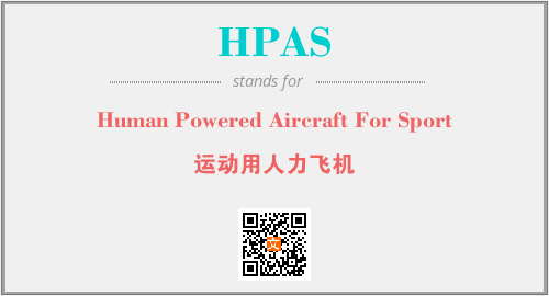 上述内容是“Human Powered Aircraft For Sport”作为“HPAS”的缩写,解释为“运动用人力飞机”时的信息,以及英文缩略词HPAS所代表的英文单词,其对应的中文拼音、详细解释以及在英文中的流行度和相关分类、应用领域及应用示例等。