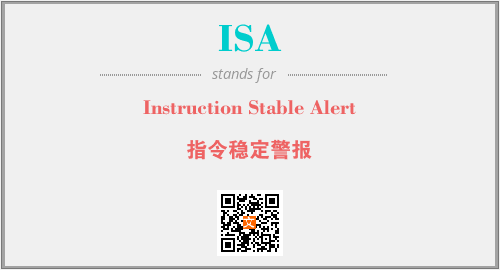 上述内容是“Instruction Stable Alert”作为“ISA”的缩写,解释为“指令稳定警报”时的信息,以及英文缩略词ISA所代表的英文单词,其对应的中文拼音、详细解释以及在英文中的流行度和相关分类、应用领域及应用示例等。