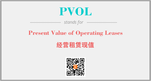 上述内容是“Present Value of Operating Leases”作为“PVOL”的缩写,解释为“经营租赁现值”时的信息,以及英文缩略词PVOL所代表的英文单词,其对应的中文拼音、详细解释以及在英文中的流行度和相关分类、应用领域及应用示例等。
