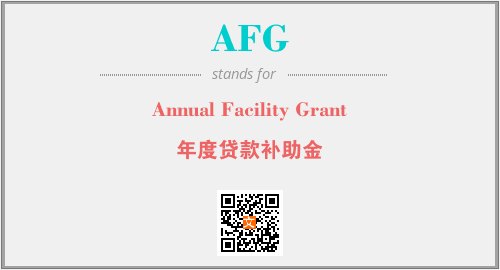 上述内容是“Annual Facility Grant”作为“AFG”的缩写,解释为“年度贷款补助金”时的信息,以及英文缩略词AFG所代表的英文单词,其对应的中文拼音、详细解释以及在英文中的流行度和相关分类、应用领域及应用示例等。