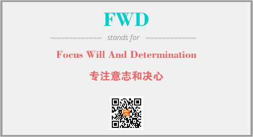 英文缩略词“FWD”经常作为“Focus Will And Determination”的英文缩写来使用,中文表示:“专注意志和决心”。本文将详细介绍英文缩写词FWD所代表英文单词,其对应的中文拼音、详细解释以及在英语中的流行度。此外,还有关于缩略词FWD的分类、应用领域及相关应用示例等。
