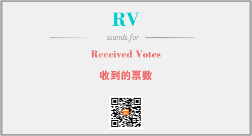 上述内容是“Received Votes”作为“RV”的缩写,解释为“收到的票数”时的信息,以及英文缩略词RV所代表的英文单词,其对应的中文拼音、详细解释以及在英文中的流行度和相关分类、应用领域及应用示例等。