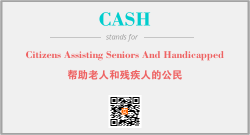 上述内容是“Citizens Assisting Seniors And Handicapped”作为“CASH”的缩写,解释为“帮助老人和残疾人的公民”时的信息,以及英文缩略词CASH所代表的英文单词,其对应的中文拼音、详细解释以及在英文中的流行度和相关分类、应用领域及应用示例等。