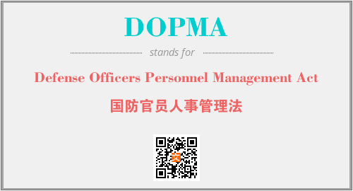 上述内容是“Defense Officers Personnel Management Act”作为“DOPMA”的缩写,解释为“国防官员人事管理法”时的信息,以及英文缩略词DOPMA所代表的英文单词,其对应的中文拼音、详细解释以及在英文中的流行度和相关分类、应用领域及应用示例等。
