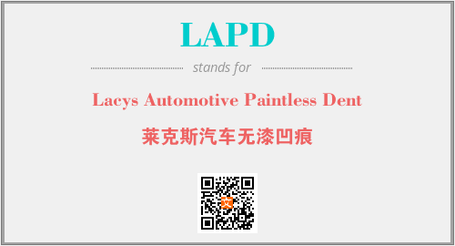 上述内容是“Lacys Automotive Paintless Dent”作为“LAPD”的缩写,解释为“莱克斯汽车无漆凹痕”时的信息,以及英文缩略词LAPD所代表的英文单词,其对应的中文拼音、详细解释以及在英文中的流行度和相关分类、应用领域及应用示例等。