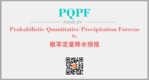 上述内容是“Probabilistic Quantitative Precipitation Forecasts”作为“PQPF”的缩写,解释为“概率定量降水预报”时的信息,以及英文缩略词PQPF所代表的英文单词,其对应的中文拼音、详细解释以及在英文中的流行度和相关分类、应用领域及应用示例等。
