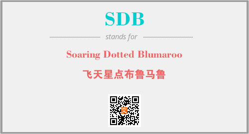 上述内容是“Soaring Dotted Blumaroo”作为“SDB”的缩写,解释为“飞天星点布鲁马鲁”时的信息,以及英文缩略词SDB所代表的英文单词,其对应的中文拼音、详细解释以及在英文中的流行度和相关分类、应用领域及应用示例等。