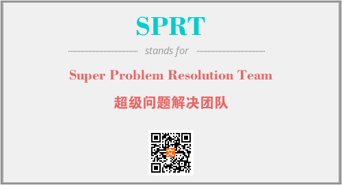 英文缩略词“SPRT”经常作为“Super Problem Resolution Team”的英文缩写来使用,中文表示:“超级问题解决团队”。本文将详细介绍英文缩写词SPRT所代表英文单词,其对应的中文拼音、详细解释以及在英语中的流行度。此外,还有关于缩略词SPRT的分类、应用领域及相关应用示例等。