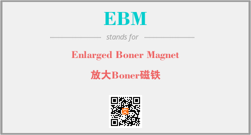英文缩略词“EBM”经常作为“Enlarged Boner Magnet”的英文缩写来使用,中文表示:“放大Boner磁铁”。本文将详细介绍英文缩写词EBM所代表英文单词,其对应的中文拼音、详细解释以及在英语中的流行度。此外,还有关于缩略词EBM的分类、应用领域及相关应用示例等。