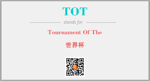 英文缩略词“TOT”经常作为“Tournament Of The”的英文缩写来使用,中文表示:“世界杯”。本文将详细介绍英文缩写词TOT所代表英文单词,其对应的中文拼音、详细解释以及在英语中的流行度。此外,还有关于缩略词TOT的分类、应用领域及相关应用示例等。