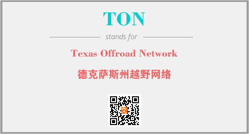上述内容是“Texas Offroad Network”作为“TON”的缩写,解释为“德克萨斯州越野网络”时的信息,以及英文缩略词TON所代表的英文单词,其对应的中文拼音、详细解释以及在英文中的流行度和相关分类、应用领域及应用示例等。