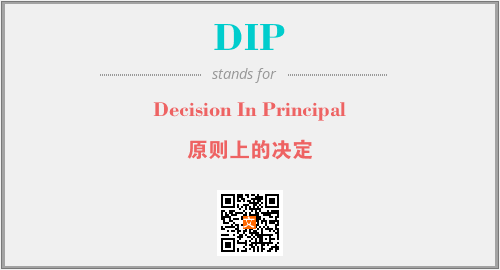 英文缩略词“DIP”经常作为“Decision In Principal”的英文缩写来使用,中文表示:“原则上的决定”。本文将详细介绍英文缩写词DIP所代表英文单词,其对应的中文拼音、详细解释以及在英语中的流行度。此外,还有关于缩略词DIP的分类、应用领域及相关应用示例等。