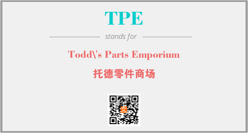 以上为Todd\'s Parts Emporium英文缩略词TPE的中文解释,以及该英文缩写在英语的流行度、分类和应用领域方面的信息。