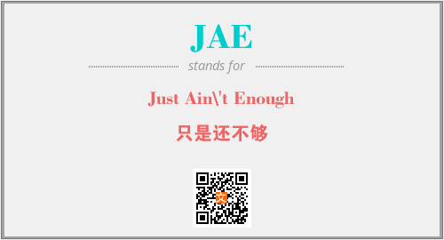 英文缩略词“JAE”经常作为“Just Ain\'t Enough”的英文缩写来使用,中文表示:“只是还不够”。本文将详细介绍英文缩写词JAE所代表英文单词,其对应的中文拼音、详细解释以及在英语中的流行度。此外,还有关于缩略词JAE的分类、应用领域及相关应用示例等。