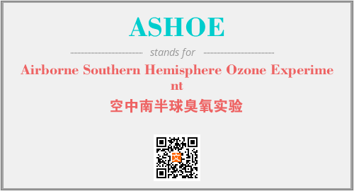 上述内容是“Airborne Southern Hemisphere Ozone Experiment”作为“ASHOE”的缩写,解释为“空中南半球臭氧实验”时的信息,以及英文缩略词ASHOE所代表的英文单词,其对应的中文拼音、详细解释以及在英文中的流行度和相关分类、应用领域及应用示例等。