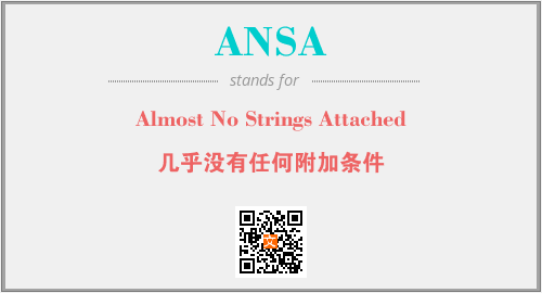 以上为Almost No Strings Attached英文缩略词ANSA的中文解释,以及该英文缩写在英语的流行度、分类和应用领域方面的信息。