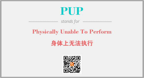 以上为Physically Unable To Perform英文缩略词PUP的中文解释,以及该英文缩写在英语的流行度、分类和应用领域方面的信息。
