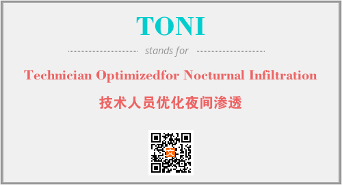 上述内容是“Technician Optimizedfor Nocturnal Infiltration”作为“TONI”的缩写,解释为“技术人员优化夜间渗透”时的信息,以及英文缩略词TONI所代表的英文单词,其对应的中文拼音、详细解释以及在英文中的流行度和相关分类、应用领域及应用示例等。