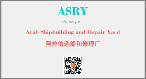 英文缩略词“ASRY”经常作为“Arab Shipbuilding and Repair Yard”的英文缩写来使用,中文表示:“阿拉伯造船和修理厂”。本文将详细介绍英文缩写词ASRY所代表英文单词,其对应的中文拼音、详细解释以及在英语中的流行度。此外,还有关于缩略词ASRY的分类、应用领域及相关应用示例等。