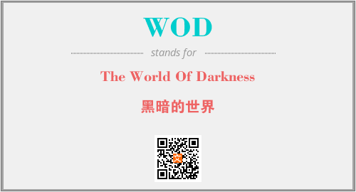 英文缩略词“WOD”经常作为“The World Of Darkness”的英文缩写来使用,中文表示:“黑暗的世界”。本文将详细介绍英文缩写词WOD所代表英文单词,其对应的中文拼音、详细解释以及在英语中的流行度。此外,还有关于缩略词WOD的分类、应用领域及相关应用示例等。