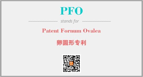 上述内容是“Patent Fornum Ovalea”作为“PFO”的缩写,解释为“卵圆形专利”时的信息,以及英文缩略词PFO所代表的英文单词,其对应的中文拼音、详细解释以及在英文中的流行度和相关分类、应用领域及应用示例等。