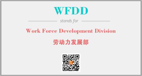 上述内容是“Work Force Development Division”作为“WFDD”的缩写,解释为“劳动力发展部”时的信息,以及英文缩略词WFDD所代表的英文单词,其对应的中文拼音、详细解释以及在英文中的流行度和相关分类、应用领域及应用示例等。