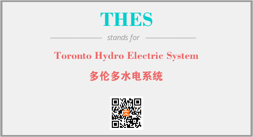 上述内容是“Toronto Hydro Electric System”作为“THES”的缩写,解释为“多伦多水电系统”时的信息,以及英文缩略词THES所代表的英文单词,其对应的中文拼音、详细解释以及在英文中的流行度和相关分类、应用领域及应用示例等。
