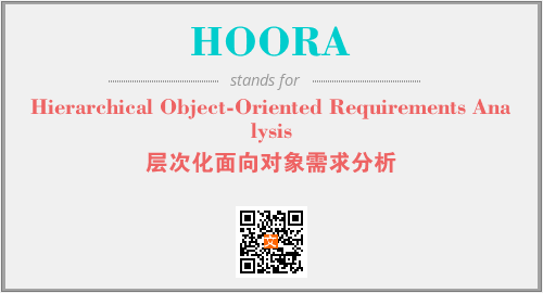 上述内容是“Hierarchical Object-Oriented Requirements Analysis”作为“HOORA”的缩写,解释为“层次化面向对象需求分析”时的信息,以及英文缩略词HOORA所代表的英文单词,其对应的中文拼音、详细解释以及在英文中的流行度和相关分类、应用领域及应用示例等。