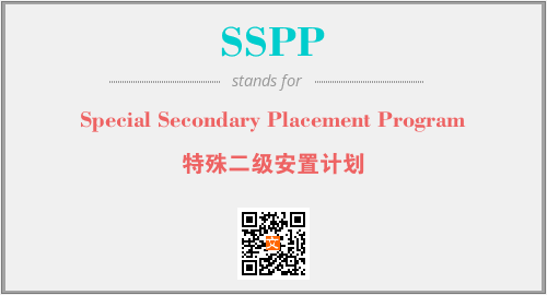 以上为Special Secondary Placement Program英文缩略词SSPP的中文解释,以及该英文缩写在英语的流行度、分类和应用领域方面的信息。