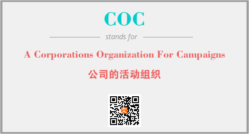 上述内容是“A Corporations Organization For Campaigns”作为“COC”的缩写,解释为“公司的活动组织”时的信息,以及英文缩略词COC所代表的英文单词,其对应的中文拼音、详细解释以及在英文中的流行度和相关分类、应用领域及应用示例等。