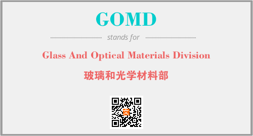 上述内容是“Glass And Optical Materials Division”作为“GOMD”的缩写,解释为“玻璃和光学材料部”时的信息,以及英文缩略词GOMD所代表的英文单词,其对应的中文拼音、详细解释以及在英文中的流行度和相关分类、应用领域及应用示例等。