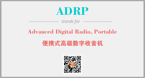 上述内容是“Advanced Digital Radio, Portable”作为“ADRP”的缩写,解释为“便携式高级数字收音机”时的信息,以及英文缩略词ADRP所代表的英文单词,其对应的中文拼音、详细解释以及在英文中的流行度和相关分类、应用领域及应用示例等。