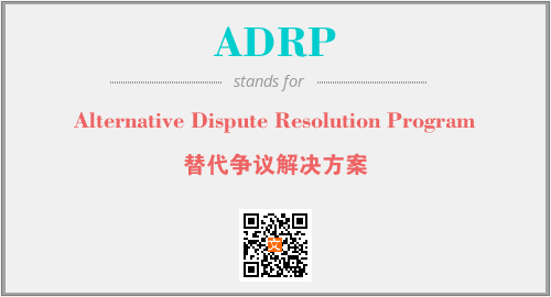 英文缩略词“ADRP”经常作为“Alternative Dispute Resolution Program”的英文缩写来使用,中文表示:“替代争议解决方案”。本文将详细介绍英文缩写词ADRP所代表英文单词,其对应的中文拼音、详细解释以及在英语中的流行度。此外,还有关于缩略词ADRP的分类、应用领域及相关应用示例等。