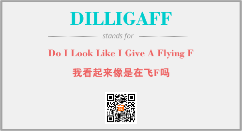英文缩略词“DILLIGAFF”经常作为“Do I Look Like I Give A Flying F”的英文缩写来使用,中文表示:“我看起来像是在飞F吗”。本文将详细介绍英文缩写词DILLIGAFF所代表英文单词,其对应的中文拼音、详细解释以及在英语中的流行度。此外,还有关于缩略词DILLIGAFF的分类、应用领域及相关应用示例等。