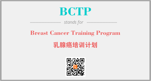 以上为Breast Cancer Training Program英文缩略词BCTP的中文解释,以及该英文缩写在英语的流行度、分类和应用领域方面的信息。