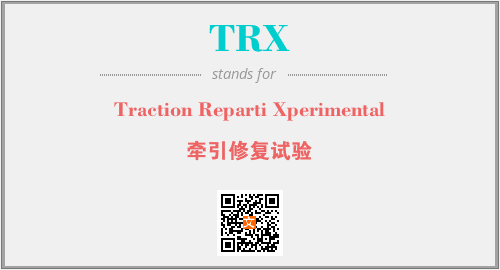 上述内容是“Traction Reparti Xperimental”作为“TRX”的缩写,解释为“牵引修复试验”时的信息,以及英文缩略词TRX所代表的英文单词,其对应的中文拼音、详细解释以及在英文中的流行度和相关分类、应用领域及应用示例等。