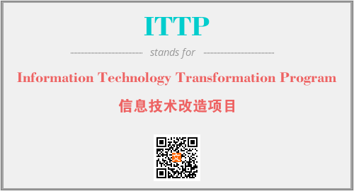 上述内容是“Information Technology Transformation Program”作为“ITTP”的缩写,解释为“信息技术改造项目”时的信息,以及英文缩略词ITTP所代表的英文单词,其对应的中文拼音、详细解释以及在英文中的流行度和相关分类、应用领域及应用示例等。