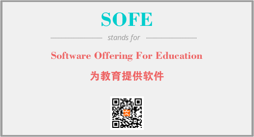 英文缩略词“SOFE”经常作为“Software Offering For Education”的英文缩写来使用,中文表示:“为教育提供软件”。本文将详细介绍英文缩写词SOFE所代表英文单词,其对应的中文拼音、详细解释以及在英语中的流行度。此外,还有关于缩略词SOFE的分类、应用领域及相关应用示例等。