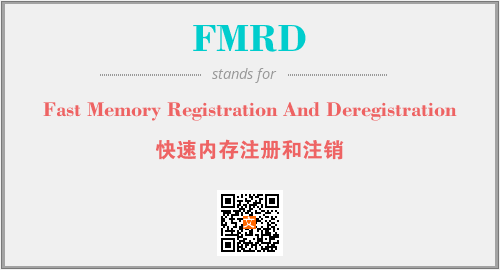 英文缩略词“FMRD”经常作为“Fast Memory Registration And Deregistration”的英文缩写来使用,中文表示:“快速内存注册和注销”。本文将详细介绍英文缩写词FMRD所代表英文单词,其对应的中文拼音、详细解释以及在英语中的流行度。此外,还有关于缩略词FMRD的分类、应用领域及相关应用示例等。