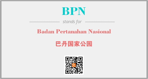 上述内容是“Badan Pertanahan Nasional”作为“BPN”的缩写,解释为“巴丹国家公园”时的信息,以及英文缩略词BPN所代表的英文单词,其对应的中文拼音、详细解释以及在英文中的流行度和相关分类、应用领域及应用示例等。