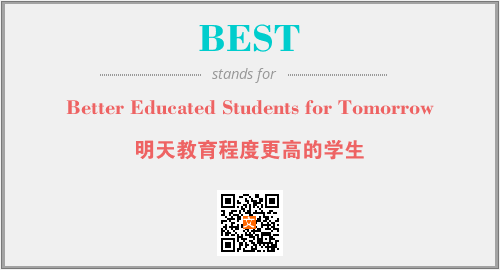 英文缩略词“BEST”经常作为“Better Educated Students for Tomorrow”的英文缩写来使用,中文表示:“明天教育程度更高的学生”。本文将详细介绍英文缩写词BEST所代表英文单词,其对应的中文拼音、详细解释以及在英语中的流行度。此外,还有关于缩略词BEST的分类、应用领域及相关应用示例等。