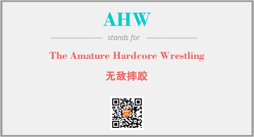 英文缩略词“AHW”经常作为“The Amature Hardcore Wrestling”的英文缩写来使用,中文表示:“无敌摔跤”。本文将详细介绍英文缩写词AHW所代表英文单词,其对应的中文拼音、详细解释以及在英语中的流行度。此外,还有关于缩略词AHW的分类、应用领域及相关应用示例等。