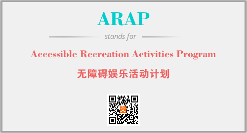 英文缩略词“ARAP”经常作为“Accessible Recreation Activities Program”的英文缩写来使用,中文表示:“无障碍娱乐活动计划”。本文将详细介绍英文缩写词ARAP所代表英文单词,其对应的中文拼音、详细解释以及在英语中的流行度。此外,还有关于缩略词ARAP的分类、应用领域及相关应用示例等。