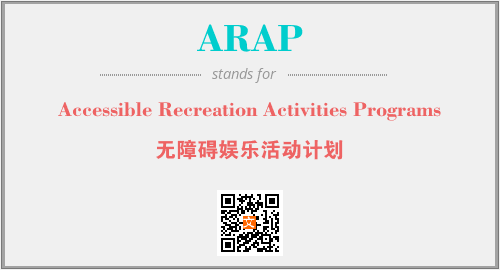 英文缩略词“ARAP”经常作为“Accessible Recreation Activities Programs”的英文缩写来使用,中文表示:“无障碍娱乐活动计划”。本文将详细介绍英文缩写词ARAP所代表英文单词,其对应的中文拼音、详细解释以及在英语中的流行度。此外,还有关于缩略词ARAP的分类、应用领域及相关应用示例等。