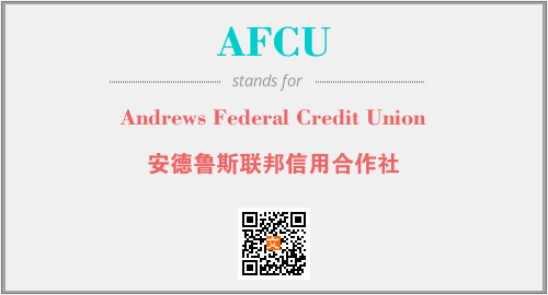英文缩略词“AFCU”经常作为“Andrews Federal Credit Union”的英文缩写来使用,中文表示:“安德鲁斯联邦信用合作社”。本文将详细介绍英文缩写词AFCU所代表英文单词,其对应的中文拼音、详细解释以及在英语中的流行度。此外,还有关于缩略词AFCU的分类、应用领域及相关应用示例等。