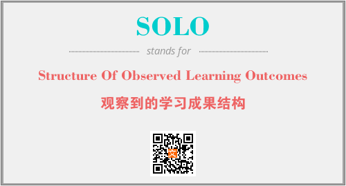 上述内容是“Structure Of Observed Learning Outcomes”作为“SOLO”的缩写,解释为“观察到的学习成果结构”时的信息,以及英文缩略词SOLO所代表的英文单词,其对应的中文拼音、详细解释以及在英文中的流行度和相关分类、应用领域及应用示例等。