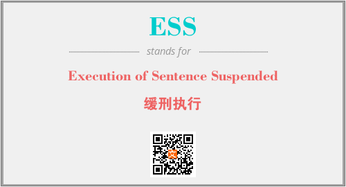上述内容是“Execution of Sentence Suspended”作为“ESS”的缩写,解释为“缓刑执行”时的信息,以及英文缩略词ESS所代表的英文单词,其对应的中文拼音、详细解释以及在英文中的流行度和相关分类、应用领域及应用示例等。