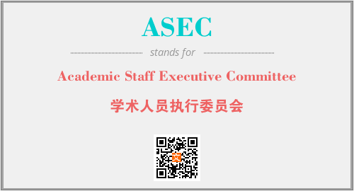 上述内容是“Academic Staff Executive Committee”作为“ASEC”的缩写,解释为“学术人员执行委员会”时的信息,以及英文缩略词ASEC所代表的英文单词,其对应的中文拼音、详细解释以及在英文中的流行度和相关分类、应用领域及应用示例等。